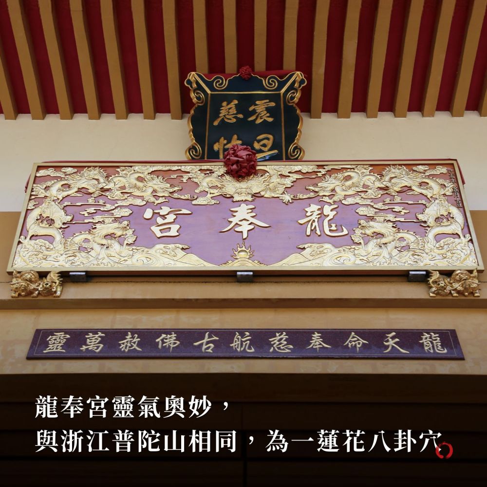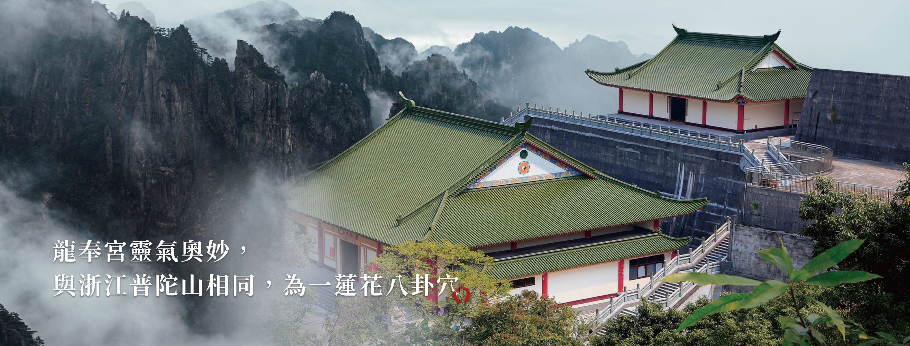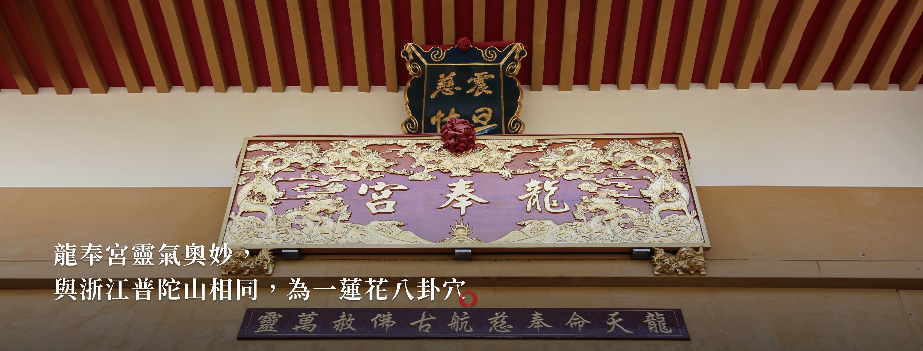 關於龍奉宮龍奉宮靈氣奧妙,與浙江普陀山相同,為一蓮花八卦穴。 龍奉宮以宣揚南海普陀菩薩大慈大悲,濟世渡群迷,倡行尊聖崇道,提倡人倫道德,辦理正統道教祭祀,發揚社會教化、慈善感念,普行公益、造福社會為宗旨,並結合宗教、文化、教育、休閒為一體。現正殿所在地原為磚造平房,由蕭順祥君捐獻土地房屋,依照道教科儀奉祀,並組織執事人員與幹部為龍奉宮開展宮務。於庚辰年八十九年農曆十一月十八日,成立籌建委員會。